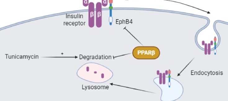 Los resultados también revelan cómo los niveles de proteína del receptor de efrina tipo B4 de tirosina quinasa  (EphB4) -un factor que se une a InsRβ y facilita su endocitosis y la degradación en los lisosomas- aumentaron en el músculo esquelético de ratones deficientes en PPARβ/δ. Por el contrario, el agonista de este receptor disminuyó sus niveles en el músculo esquelético de ratones no modificados genéticamente.